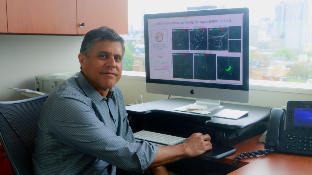 Parkinson’s Disease (PD) is a neurodegenerative disorder that affects more than 100,000 Canadians.1 This condition is often characterized through motor symptoms such as tremors and non-motor symptoms including constipation and sleep disturbances.2 PD pathology involves the build-up of a protein (alpha synuclein or α-Syn) in the brain, along with the loss of dopaminergic neurons.3 Trying to find a way to reduce the expression of α-Syn, and stopping early PD progression is key to improving the patients’ quality of life. Dr. Anurag Tandon, Scientist at the Tanz Centre for Research in Neurodegenerative Diseases and Associate Professor in the Department of Medicine, Division of Neurology, uses unique approaches to address this pervasive disease.